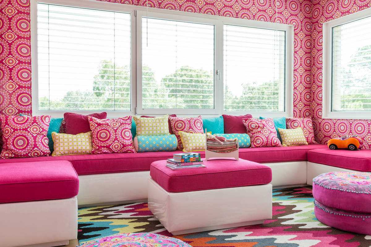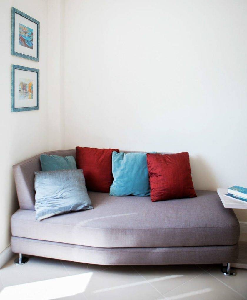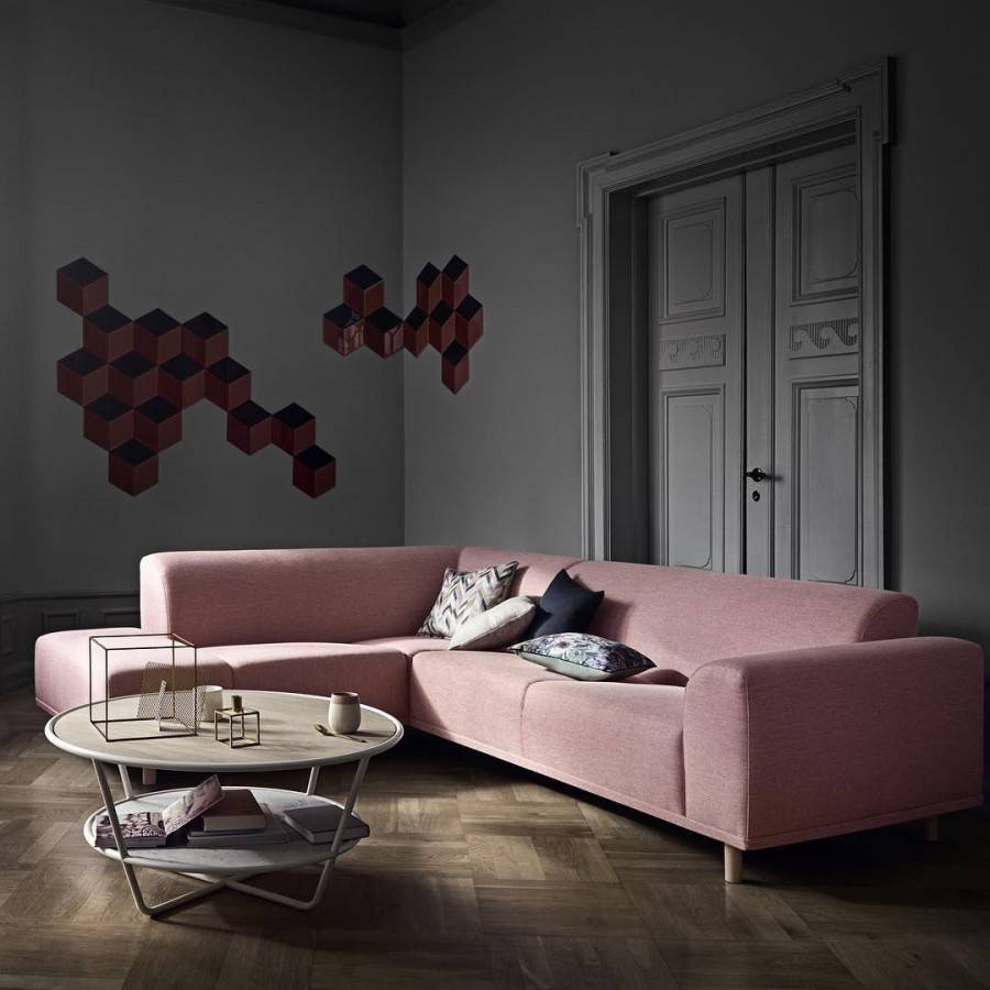 Гораздо реже встречаются угловые модели сиреневого или фиолетового цвета: такой тип обивки придает комнате индивидуальности. Лидирующее место для создания романтичных интерьеров занимает мебель в розовых тонах.