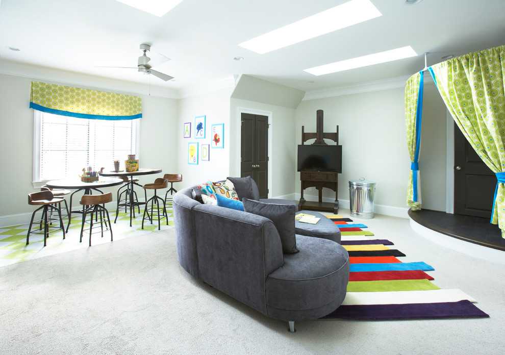 Благодаря разнообразию расцветок и форм, угловой диван подойдет и для детской комнаты. Он может стать постелью для друга, пришедшего в гости с ночевкой, но не годится в качестве постоянного спального места: для ребенка лучше приобрести ортопедический матрас.