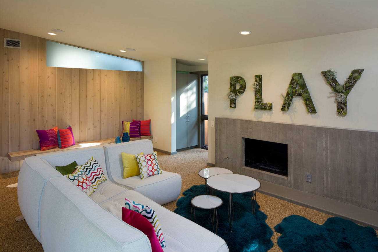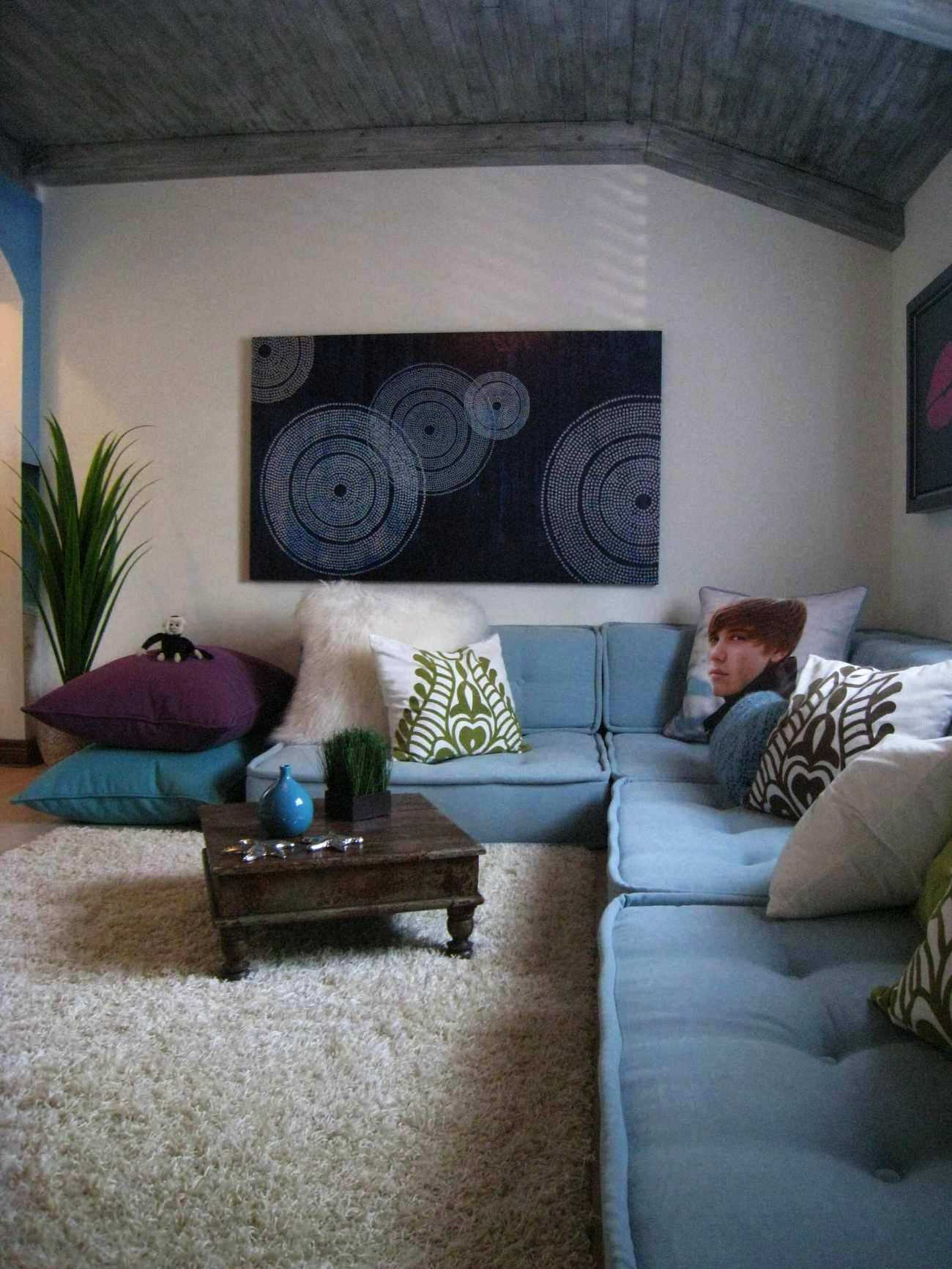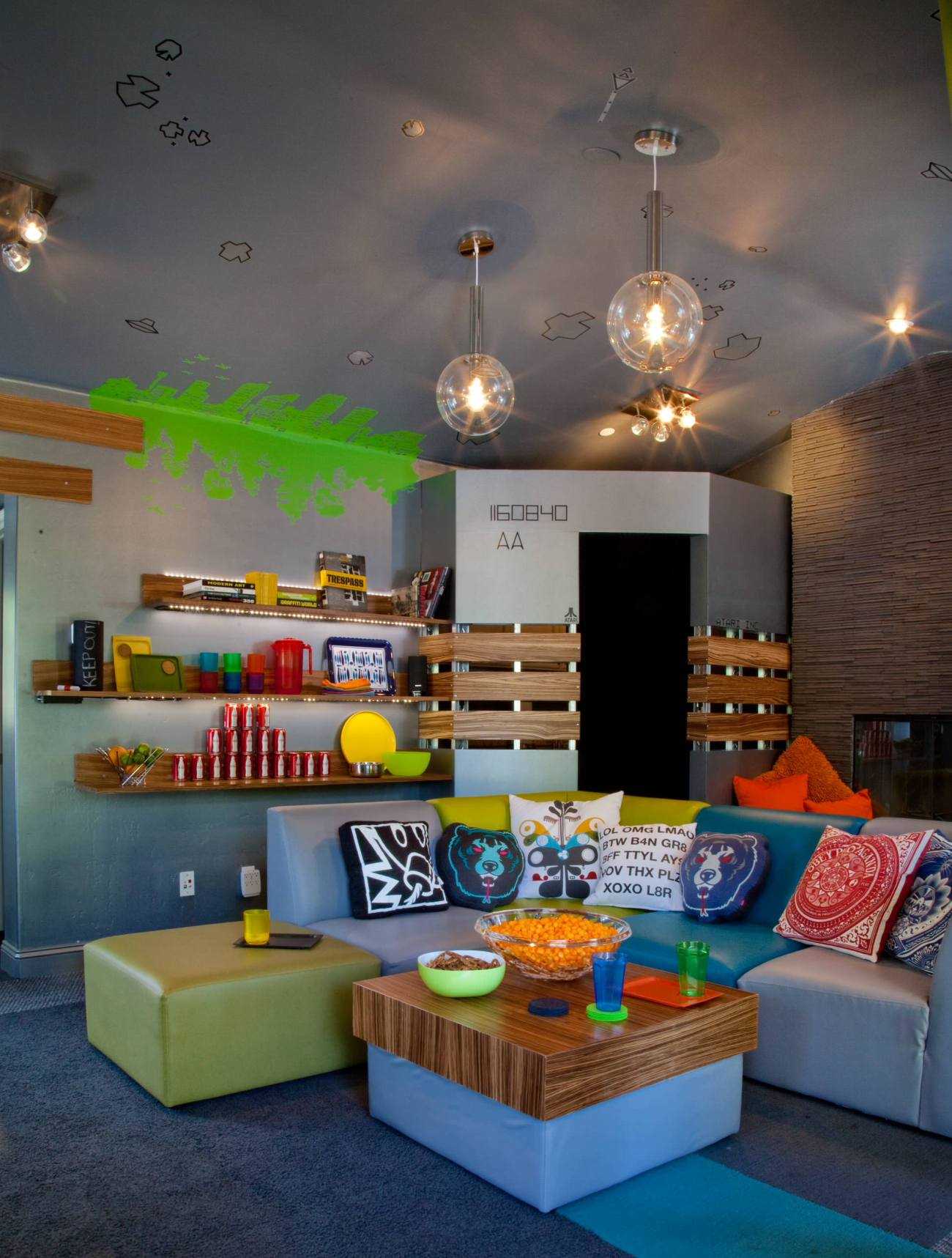 На фото комната для подростка с диваном, отдельные двухцветные модули которого при желании можно легко поменять местами.
