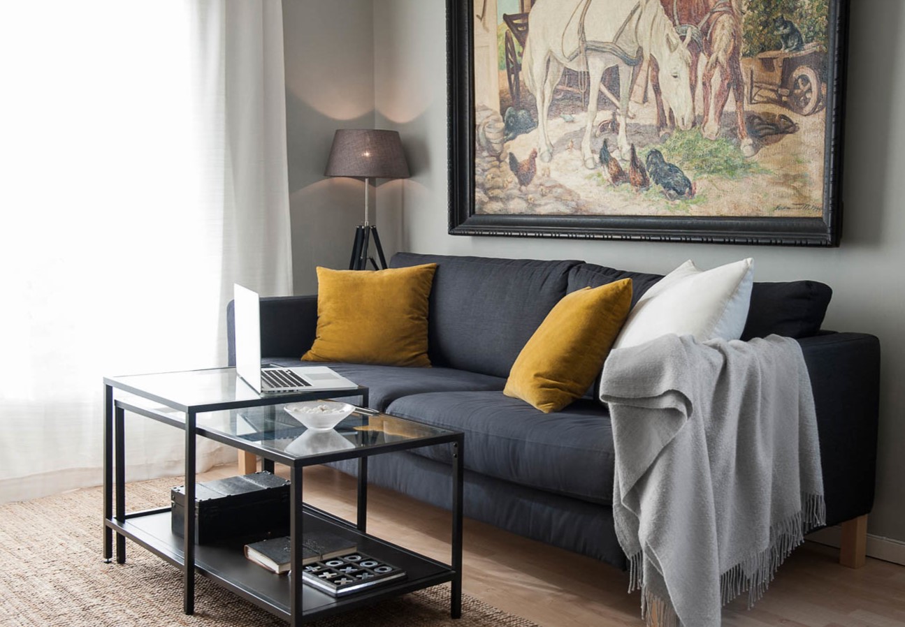Если вы беспокоитесь о целостности обивки — купите готовый чехол или симпатичное покрывало, подходящее в интерьер.