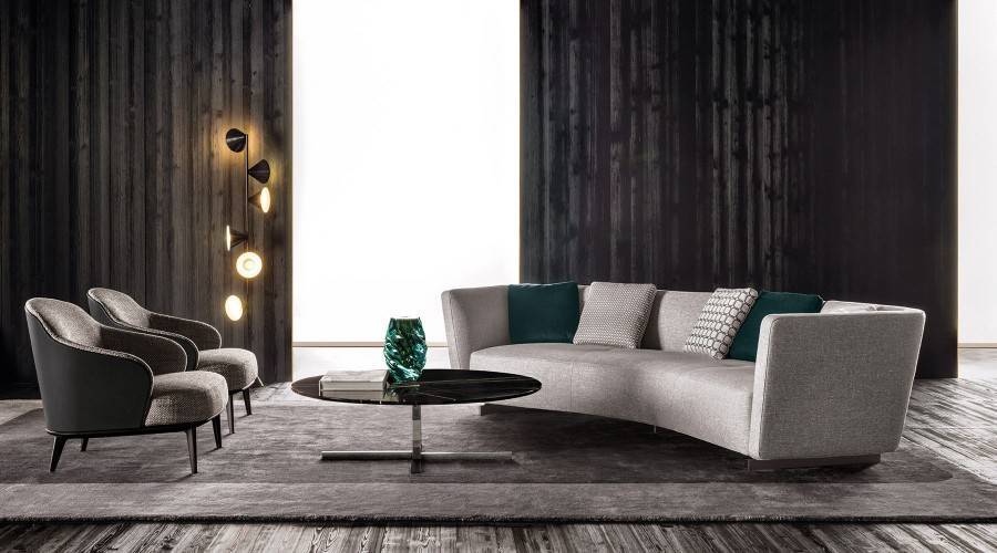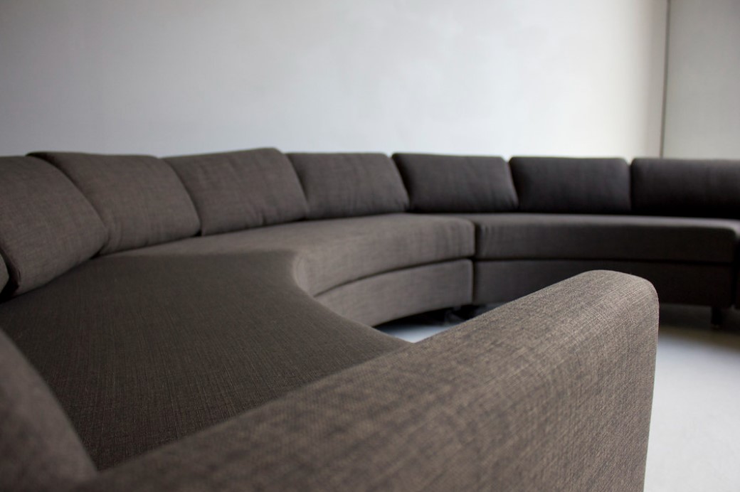 Отдельно необходимо отметить округлые диваны. Их очень любят женщины за комфорт и уютный внешний вид. Такие диваны будут стильно смотреться только в комнате большой площади. Их располагают в центре гостиной, обеспечивая каждому гостю или члену семьи удобное размещение и хороший обзор.