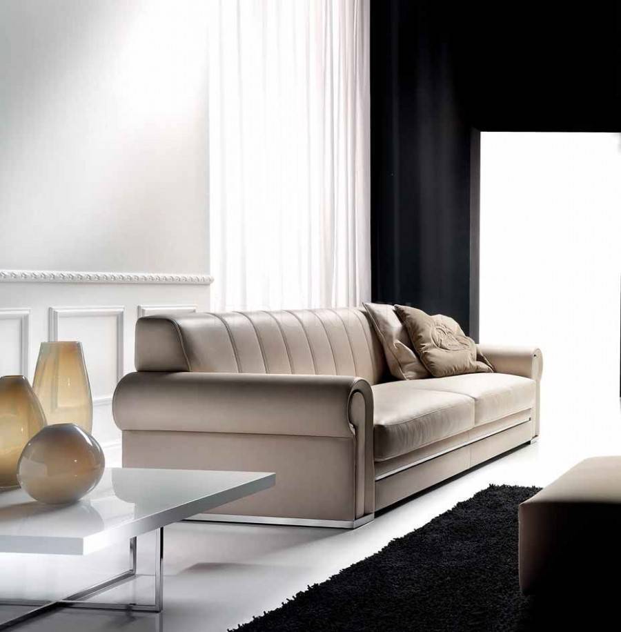 - Арт-деко – самый «нарядный» из современных стилей. Для таких диванов используют ткани с цветочными принтами, узорами из переплетенных линий, дамасскими орнаментами. Преобладающая цветовая гамма – светлая (белый, серый, бежевый, светло-лиловый).