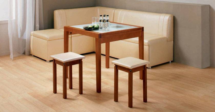На фото кухня с угловым диваном, который служит дополнительным спальным местом.