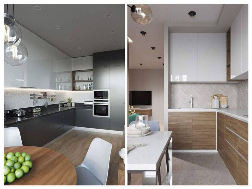 Стандартные способы расстановки мебели на кухнях до 6 кв.м. — угловая (Г-образная и П-образная), линейная и островная. Маленькие кухни и кухни близкие к квадратной форме следует делать угловыми. Линейная расстановка лучше подойдет для вытянутой и узкой (пенал) кухни. Причем можно не одну, а две стены занять мебелью, расположив мебель параллельно.