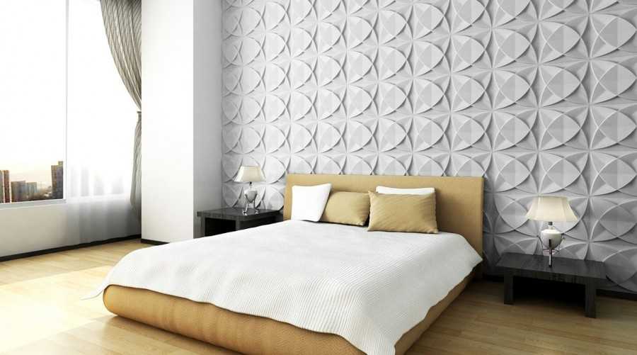 В спальне стереоскопические обои хорошо сочетаются с белыми. Такой прием позволит выделить определенную зону, например, рабочую или спальную, при этом не перегружая атмосферу комнаты.