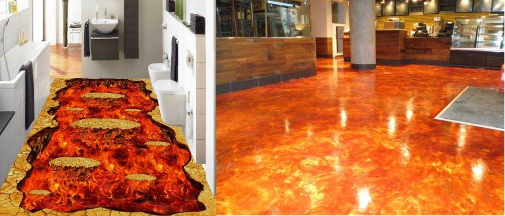 - Эпоксидные полы. Подходят для создания полов с 3D рисунком. Не настолько прочные, как предыдущие.