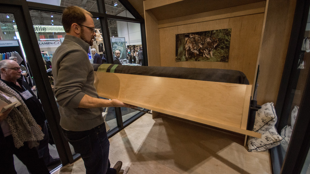 На противоположной стороне установлена Murphy-кровать, которую можно умело спрятать.