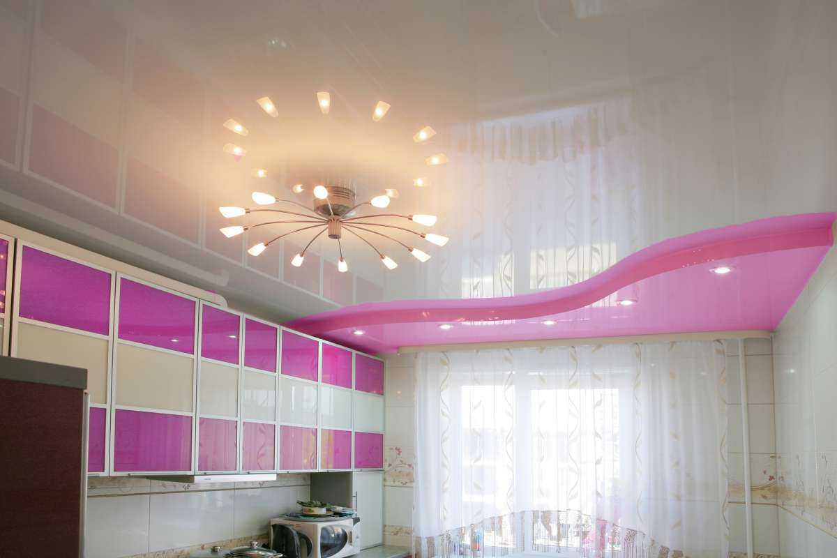 В кухне всегда повышенная влажность, часто образуется копоть, жир, конденсат, поэтому дизайн потолка должен отличаться: