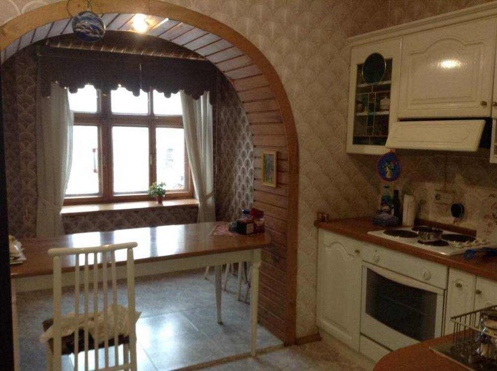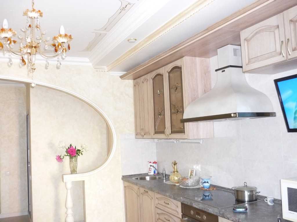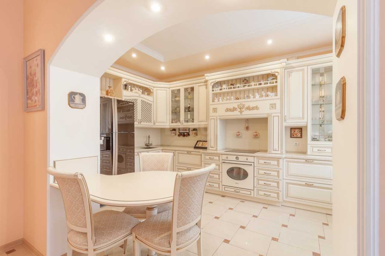 Если ваша кухня оформлена в классическом стиле, то для создания единого интерьера рекомендуется использовать классическую или трапециевидную форму арки, отделанную деревом или гипсокартоном. Арка в классическом стиле подойдет как для просторной, так и для небольшой кухни.
