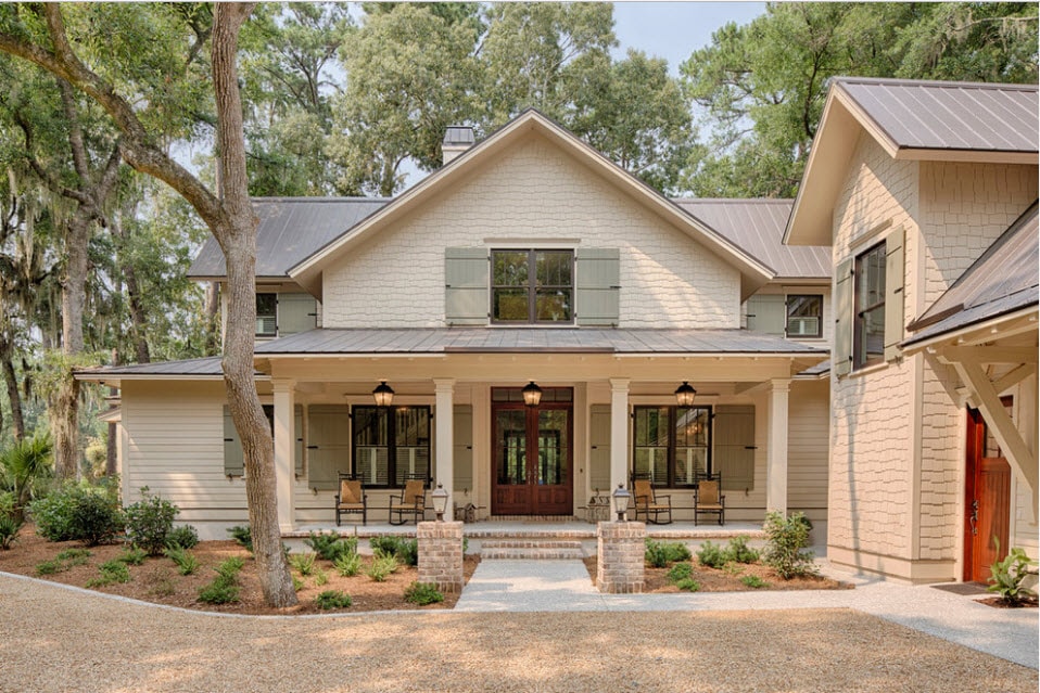 В загородном доме веранда – это не просто возможность украсить фасад. Это исключительное практичное решение. Веранда заменит беседку и зимний сад. В прохладные и дождливые дни на застекленной веранде можно принимать гостей. Если сделать стены раздвижными, то жарким летом здесь будет приятно отдыхать в тени.