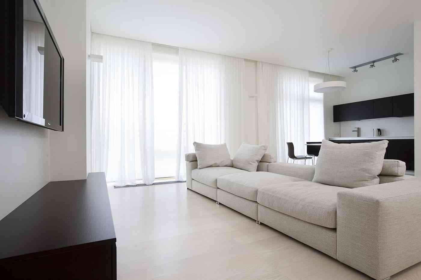 Но немаловажным достоинством является и стилистическая универсальность светлого напольного покрытия. Оформленный в одном цвете интерьер проиллюстрирует романтичность и воздушность деревенских стилей, минимализм и лаконичность современных направлений. Придать строгости и элегантности поможет сочетание контрастных цветов: небольшими акцентами (плинтус и карнизы) или углублением определённых зон помещения (стены, двери, предметы мебели).
