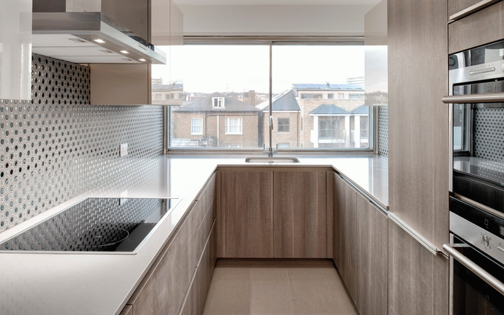 В таких случаях планировка кухни бывает П-образной или двухрядной: