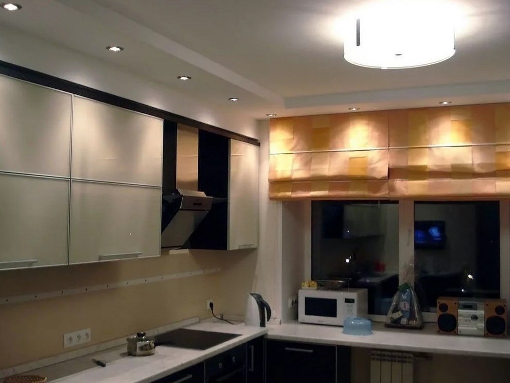 В небольшой кухне установка большого количества осветительных приборов – это спасение.