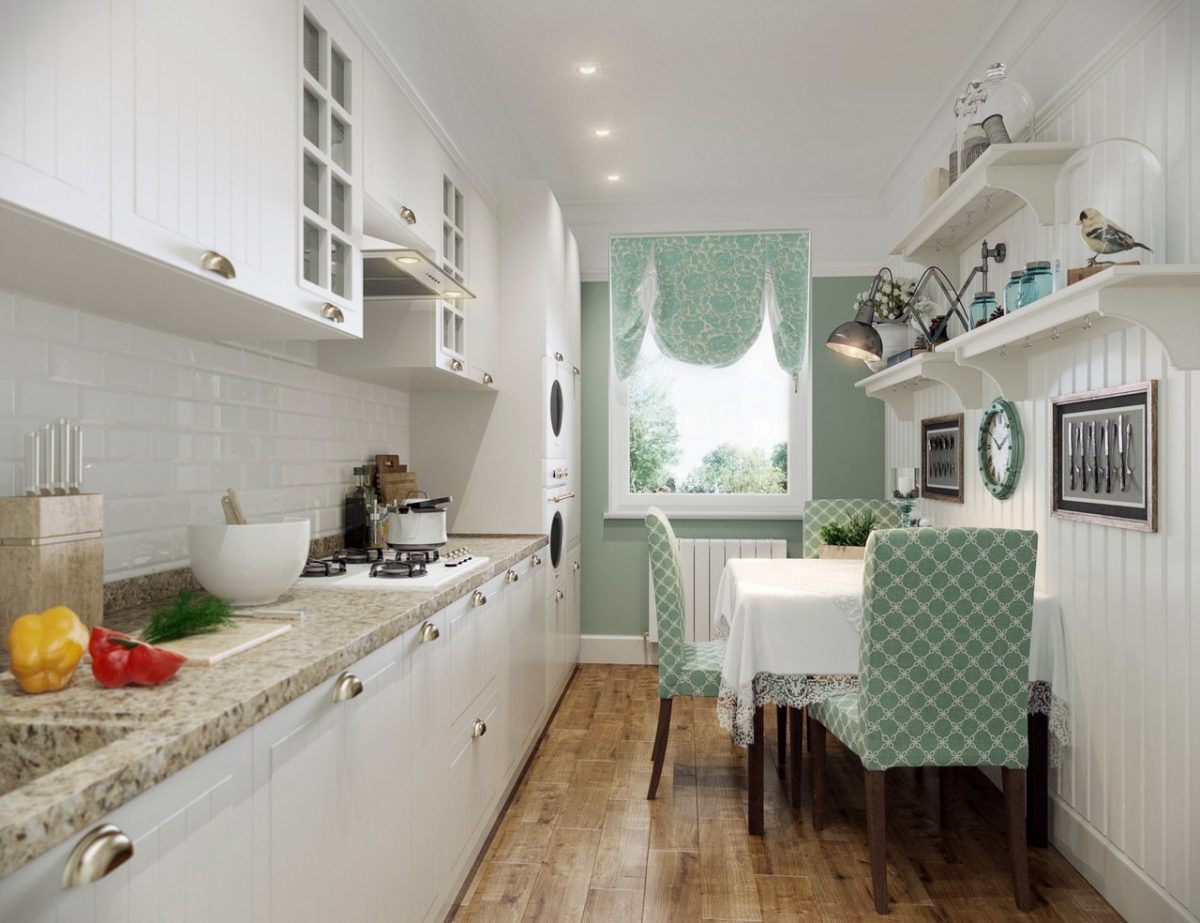 - прованс. Светлые тона отделки и фасада кухни, простой дизайн оформления мебели помогут подчеркнуть легкость оформления.