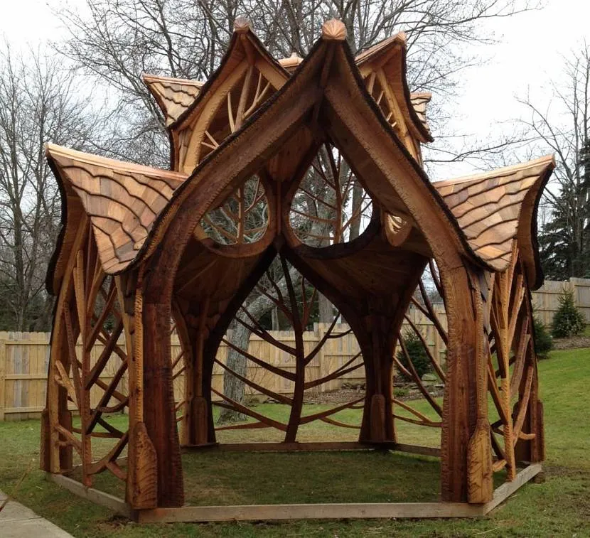 Интригующее сооружение, заставляющее вспоминать творения великого Гауди. Вряд ли беседка будет уместна около бассейна, но в саду у нее будет великолепный вид.Источник pinterest.com