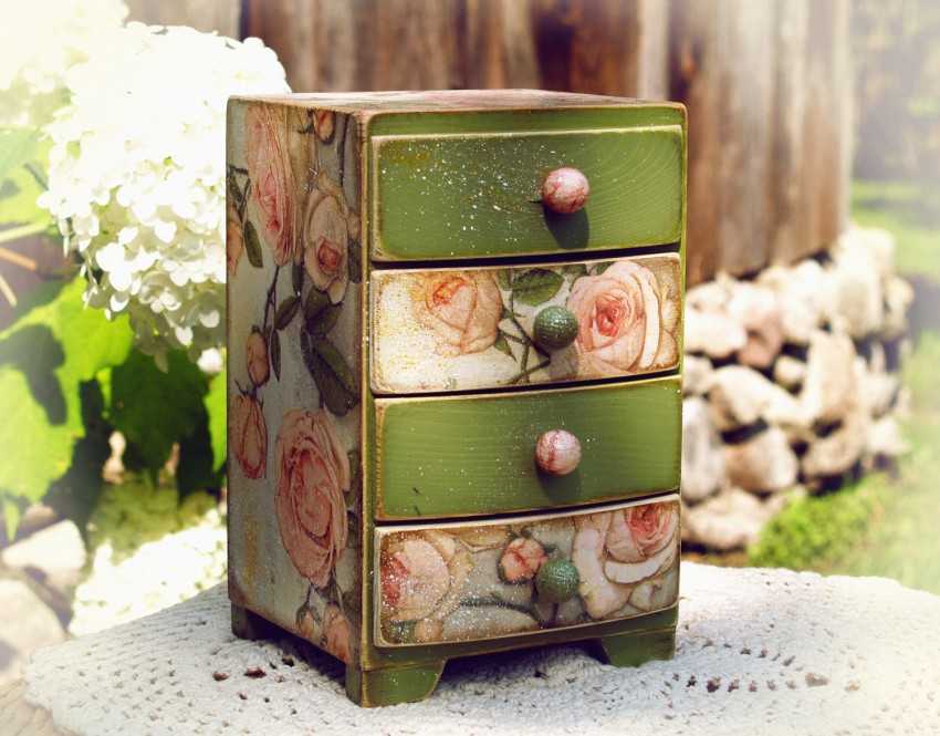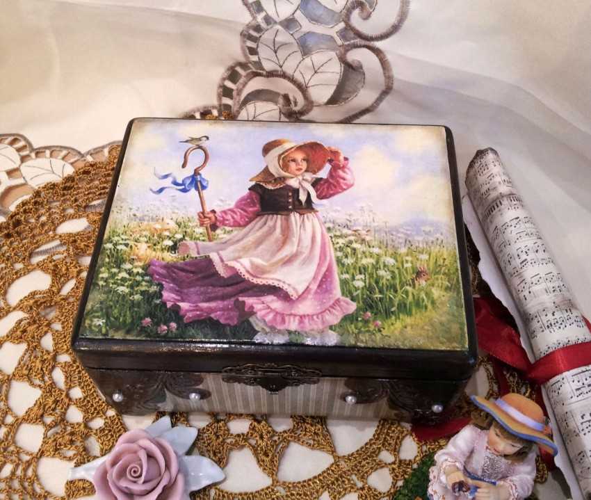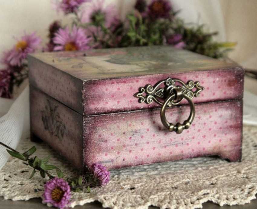 У каждой модницы наверняка есть деревянный сундучок, в котором она хранит драгоценности или бижутерию. Декупаж может творить чудеса, превратив скучную деревянную коробку в милую вещицу. И эту вещицу вы сделали сами. Согласитесь, это вдвойне приятно.