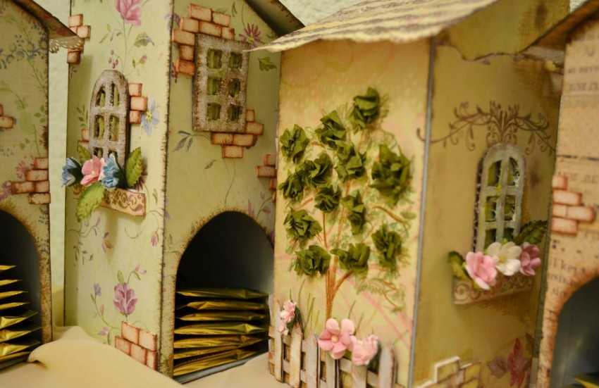 . На фото можно увидеть, как красиво смотрятся работы, которые выполнены с применением салфеток, обоев, ткани, кружева, фурнитуры.