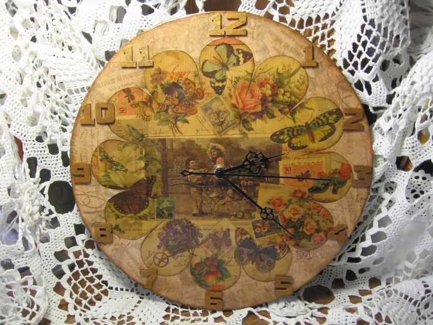 Техника декупаж отлично подходит для изменения внешнего вида часов