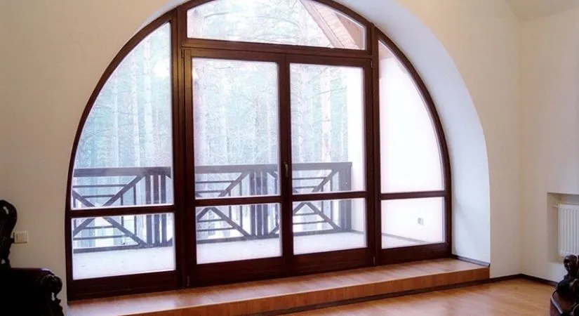 Арочные оконные конструкции могут иметь разнообразные варианты открывных створок или быть с глухим остеклением (не открывные). Верхняя часть арки может открываться фрамужным способом.