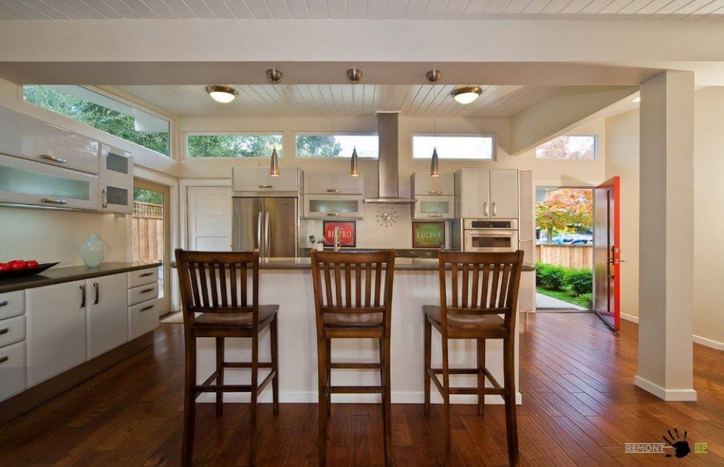 Недавно дизайнеры предложили оригинальный конструктивный прием, когда два больших окна соединяются друг с другом под прямым углом. Если они окажутся достаточно большими, то грань между помещением и улицей практически полностью стирается и создается впечатление наличия портала в природу.