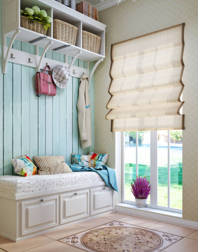 Если в прихожей есть ниша с окном, там получится прекрасное место для сидения, а если ниша глубокая, туда можно будет еще поставить сумки или посадить ребенка, пока вы одеваетесь или раздеваетесь. Кстати, хорошо будут там смотреться крупные аксессуары, например корзины или мягкие игрушки.
