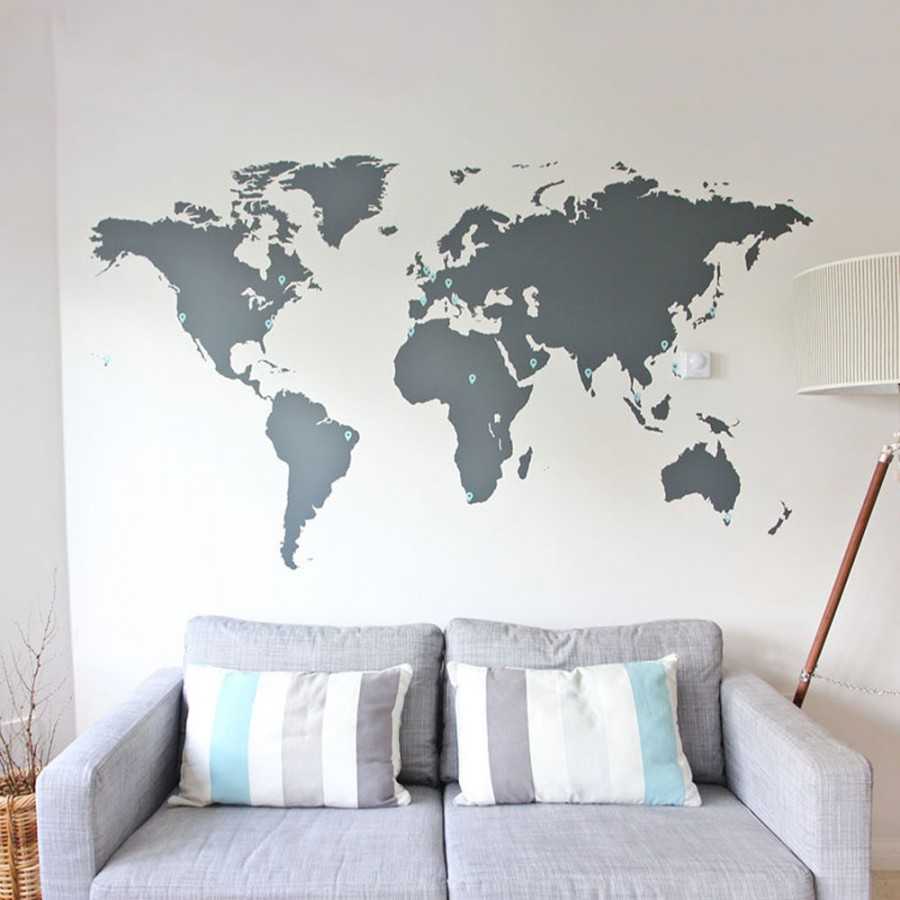 Крупные изображения занимают большую часть стен при этом кардинально меняется дизайн помещения, зрительно расширяется жилое пространство. Это может быть необычная географическая карта мира, огромный букет цветов, сюжетная композиция ночного города с силуэтами двух влюбленных, изображение царственного льва или величественного мамонта. Вариантов великое множество. Некоторые декоративные наклейки могут выглядеть как большие картины известных художников или как реалистичная фотография с 3D эффектом на всю стену.