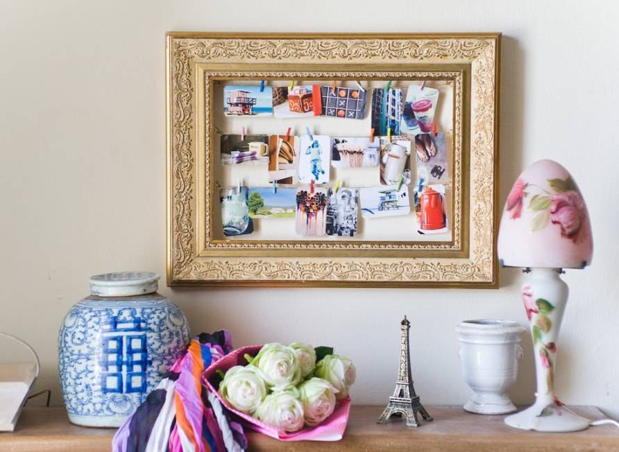 - Настенные картины, фотографии. Реализовать такую идею можно, прикрепив ленту по периметру рамки двусторонним скотчем или специальными кнопками.