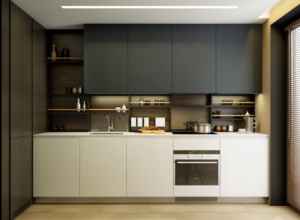Для прямоугольной кухни подойдет линейное расположение либо параллельное, когда используется только одна стена, которая длиннее, для расстановки мебели, или вне параллельно находящихся стены.