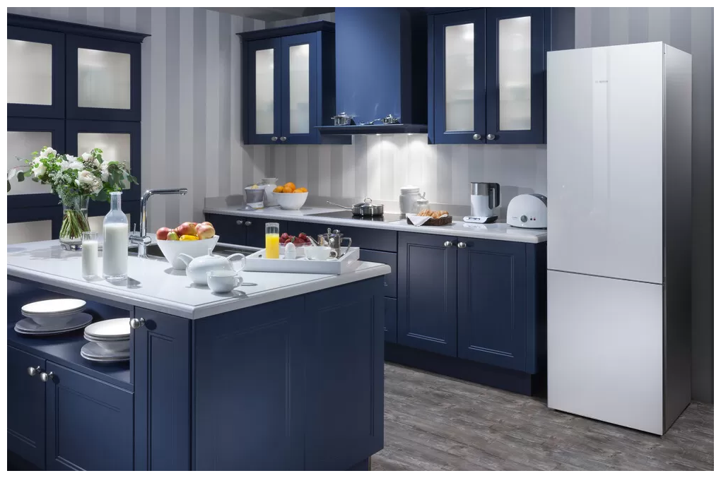 Если вы хотите поставить его в одну линию со шкафчиками кухонного гарнитура, при создании последнего необходимо подобрать идеальную глубину. Это позволит сделать так, чтобы холодильник не выделялся и создавал со шкафами кухонного гарнитура единую композицию.