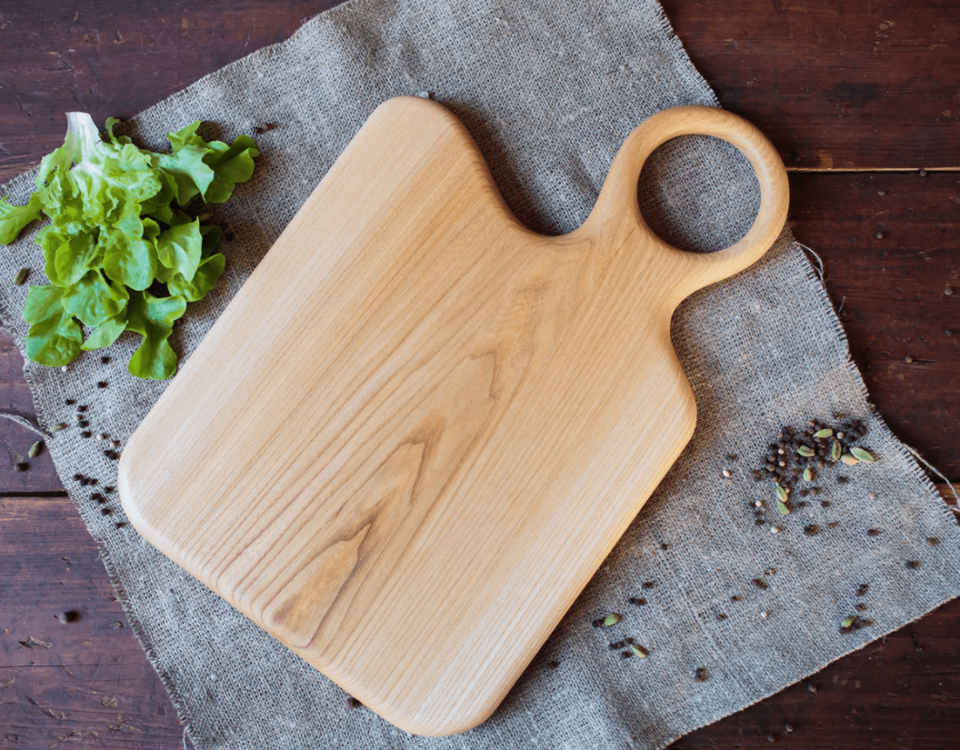 Разделочную доску можно сделать из простой обрезной доски. Её нужно хорошенько отшлифовать и покрыть лаком или оставить в естественном виде, но в таком случае изделие будет недолговечным.