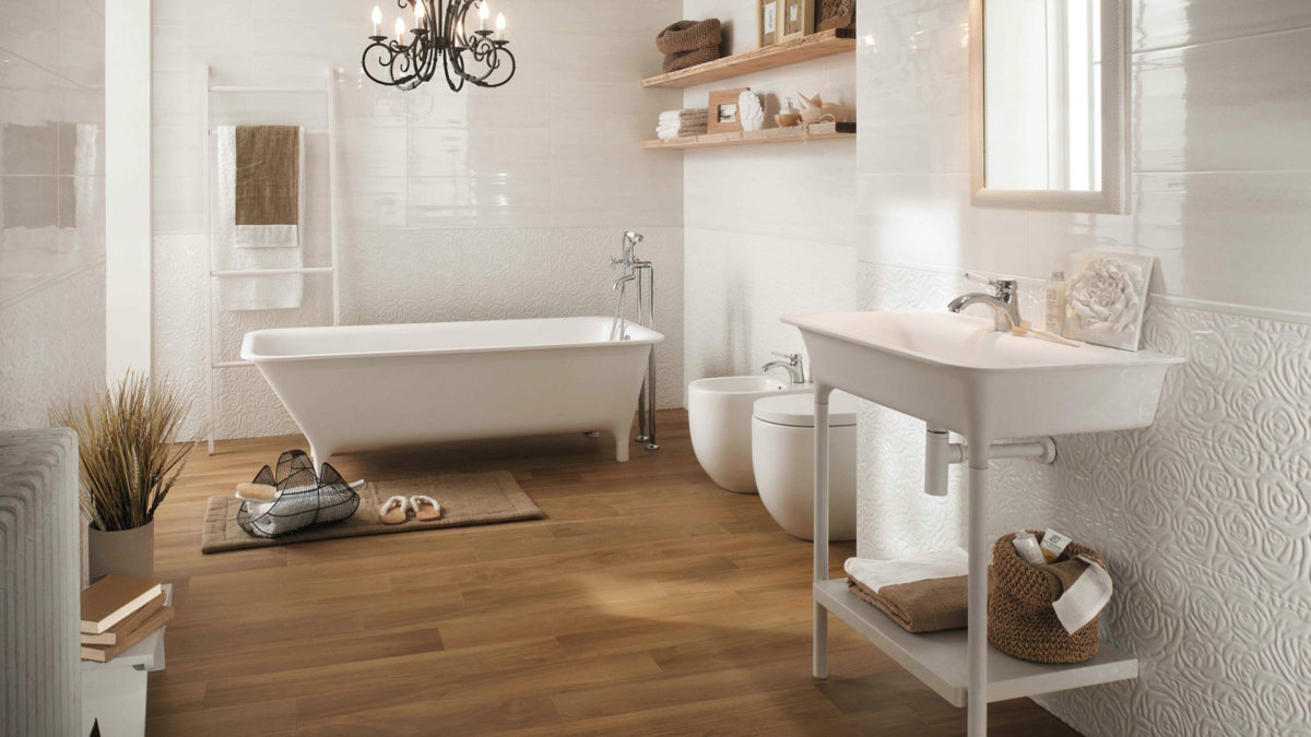 Среди хитов для ванных комнат 2021 года есть и 3D-плитка, то есть трехмерная плитка с видимой и ощутимой текстурой. Особой популярностью у дизайнеров пользуются модели из 3D плитки небольших размеров и замысловатой формы, стилизованные под восточные орнаменты.