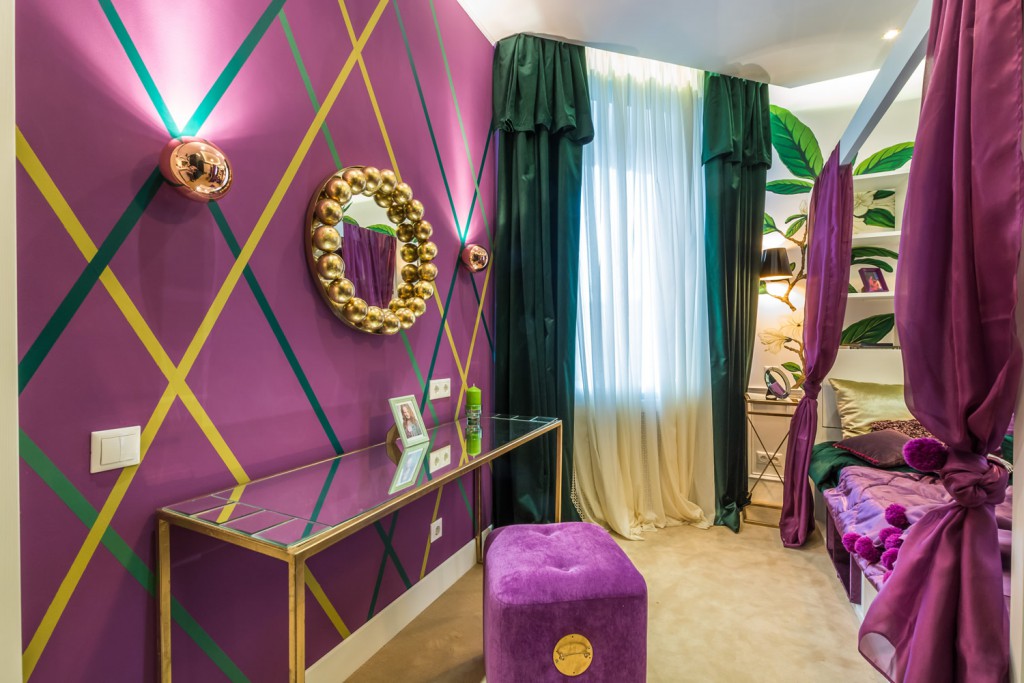 Лиловый – это хороший выбор для детской комнаты. Особенно этот цвет подходит для девочки-подростка, которой розовая комната кажется слишком детской, а лиловая будет восприниматься нежной, романтичной и молодежной одновременно. Успокаивающее действие оттенка обеспечит спокойные и радужные сны в любом возрасте.