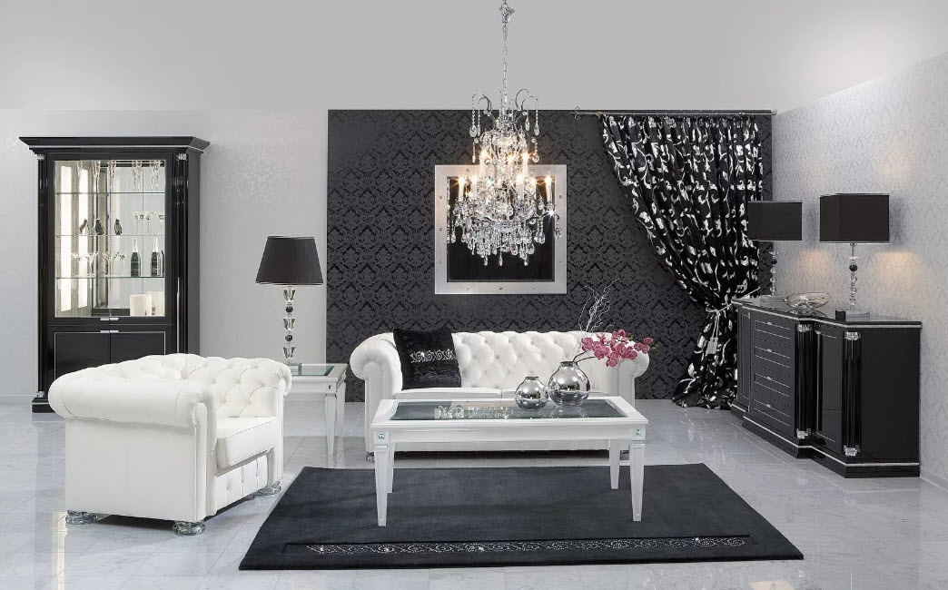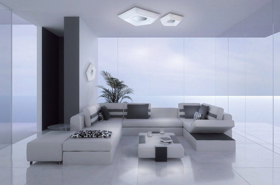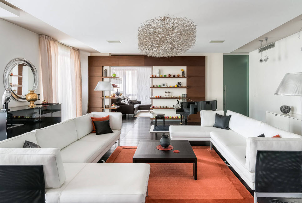 Белые тона ассоциируется со светом и чистотой. В интерьере гостиной белый цвет можно сочетать с яркими или темными цветовыми акцентами, чтобы наполнить помещение новыми красками.
