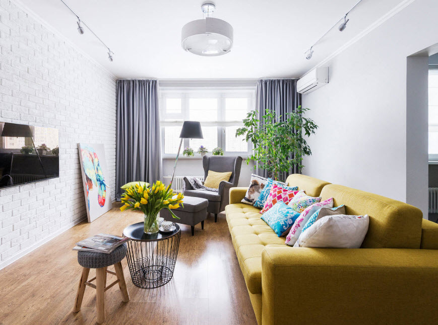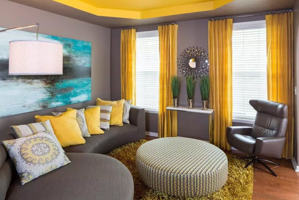 Идеальным цветом для того, чтобы разбавить монотонный серый интерьер, считается желтый. Не зависимо от пропорций смешивания, такие оттенки органично сочетаются между собой и отлично вписываются в дизайн любых помещений.
