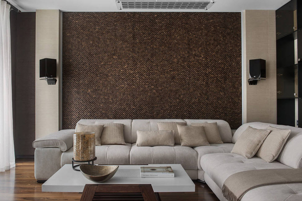 Кроме своей функциональности в плане коррекции размеров недостаточно просторного помещения светлые оттенки обладают антистрессовым эффектом, способствую дружескому общению, отдыху после тяжелого дня. Преимуществ у гостиной выдержанной в таких тонах масса: