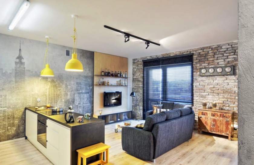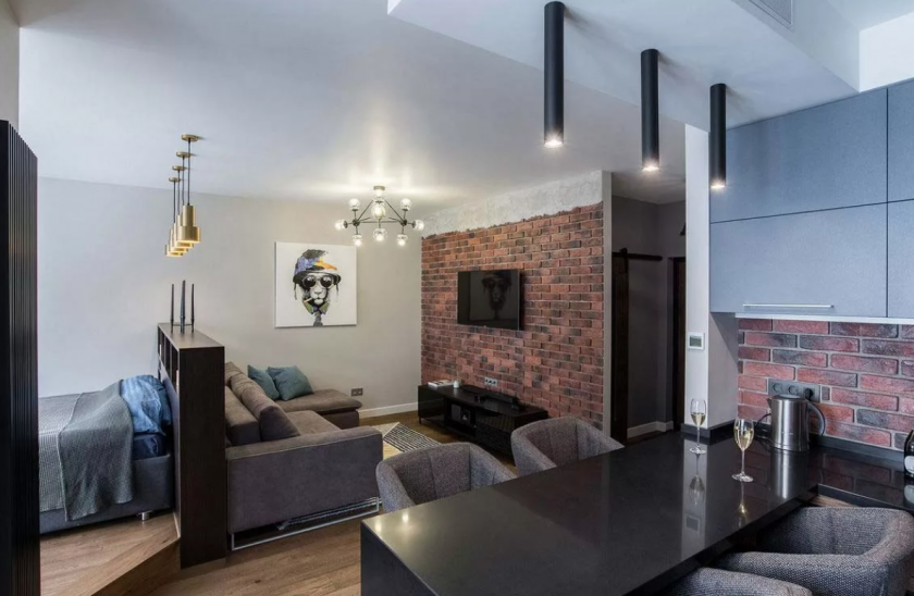 Для квартир-студий зачастую применяется точечное освещение, которое должно быть во всех активных зонах. Дополнить его можно настенными, подвесными или напольными подсветками.