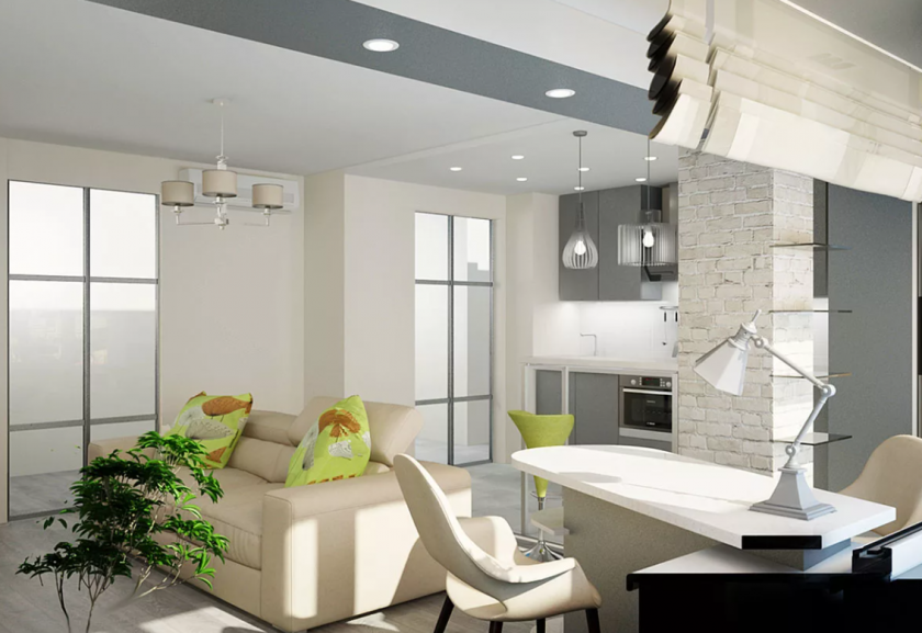 В квартирах с небольшой площадью следует избегать нижнего уровня света. Подобный дизайн маленькой студии будет актуален, если нужно визуально разграничить комнату. Выбирайте оригинальные светильники, которые будут сочетаться с общей дизайном квартиры.