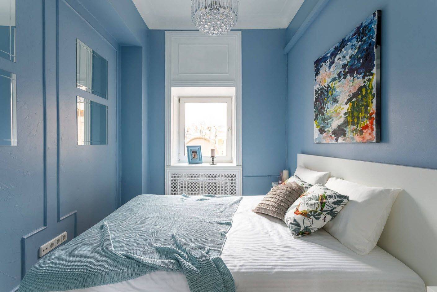 Общий дизайн спальни играет немаловажную роль. Но все же, именно на цвет оформления всегда делается некий акцент. Ведь именно он задает общее настроение и атмосферу помещению. Для наиболее качественного, приятного и спокойного сна психологи рекомендуют выбирать синий цвет. Он успокаивает, помогает расслабиться после насыщенного дня и в целом помогает сохранить внутреннюю гармонию.
