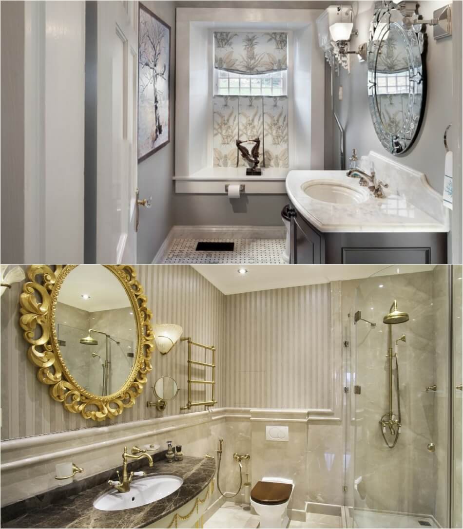 - использовать массивные зеркала, которые придают роскошный вид и визуально расширяют помещение;