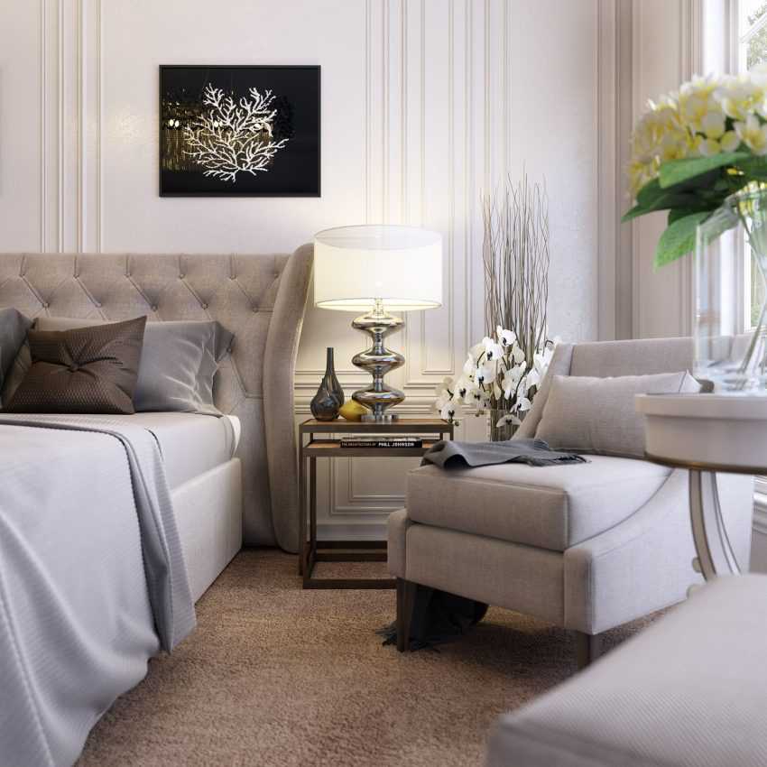 Спальня в классическом стиле в светлых тонах. Фото проекта
