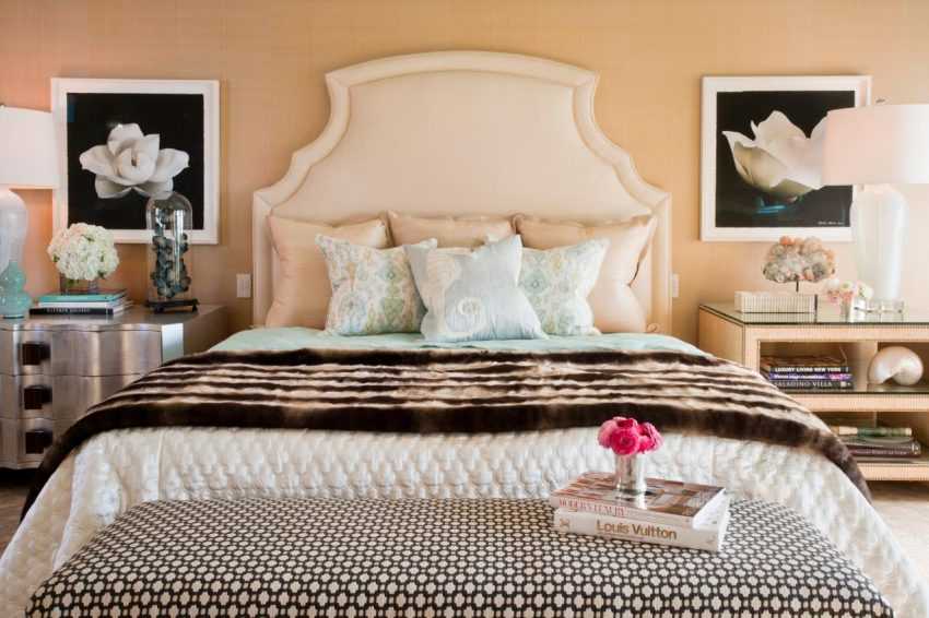Персиковый подойдет для оформления спален в различных стилях, от классического до модерна.