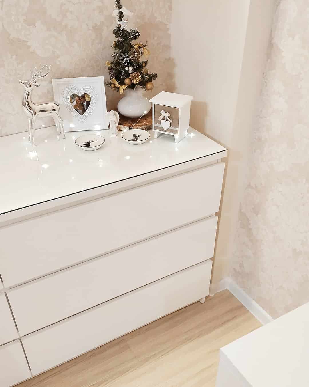 Идеальным дополнением может стать элегантный туалетный столик, мягкое кресло, подсвечники или картина на стене. Белое и коричневое можно разнообразить золотыми аксессуарами или ярким ковром.