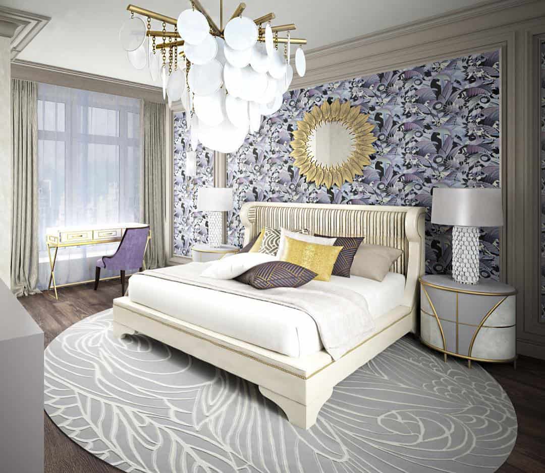 - изголовье кровати должно быть выполнено с особым шиком: его можно покрыть позолотой или сделать декоративную лепку;