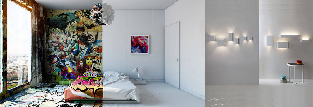 Асимметрия. Отлично подходит для комнат небольших размеров. Метод заключается в сочетании больших и маленьких по размеру предметов интерьера, учитывается фактура и цвет материала, из которых они сделаны. То есть, в спальне находится кресло необычной расцветки. Чтобы его уравновесить, можно сделать нейтральную отделку стен. Если в помещении стоит низкая кровать, то рядом нужно оборудовать высокий шкаф для гармонии.