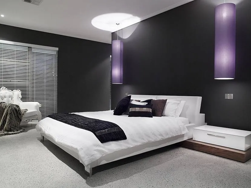 В низкой спальне дизайнеры рекомендуют сочетать черные стены со светлыми потолком и полом. Оптический прием визуально вытягивает пространство. При помощи правильной комбинации тонов узкую прямоугольную комнату можно сделать квадратной. Перегородки с большой стороны красят в темный, с маленькой – в белый.