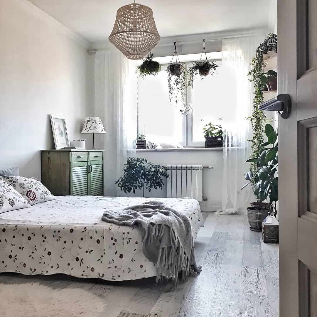 Зеленая палитра оттенков часто используется при создании уютной спальни. Она успокаивает, улучшает настроение, настраивает на позитив. Но нужно избегать темных оттенков или грамотно сочетать их со светлыми.