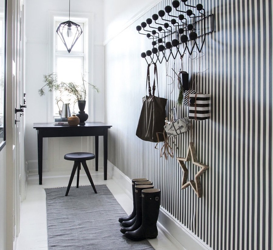 В помещении с низким потолком лучше поклеить обои с вертикальными полосами, которые приподнимут его вверх, а в тесном коридоре можно использовать продольные полосы — это еще один способ расширить помещение.