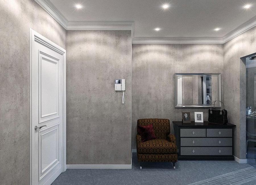 Фактурная штукатурка в прихожей в стиле хай-тек.
