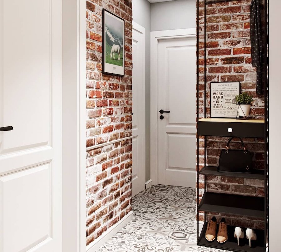 Декоративная кирпичная кладка в прихожей в стиле лофт.