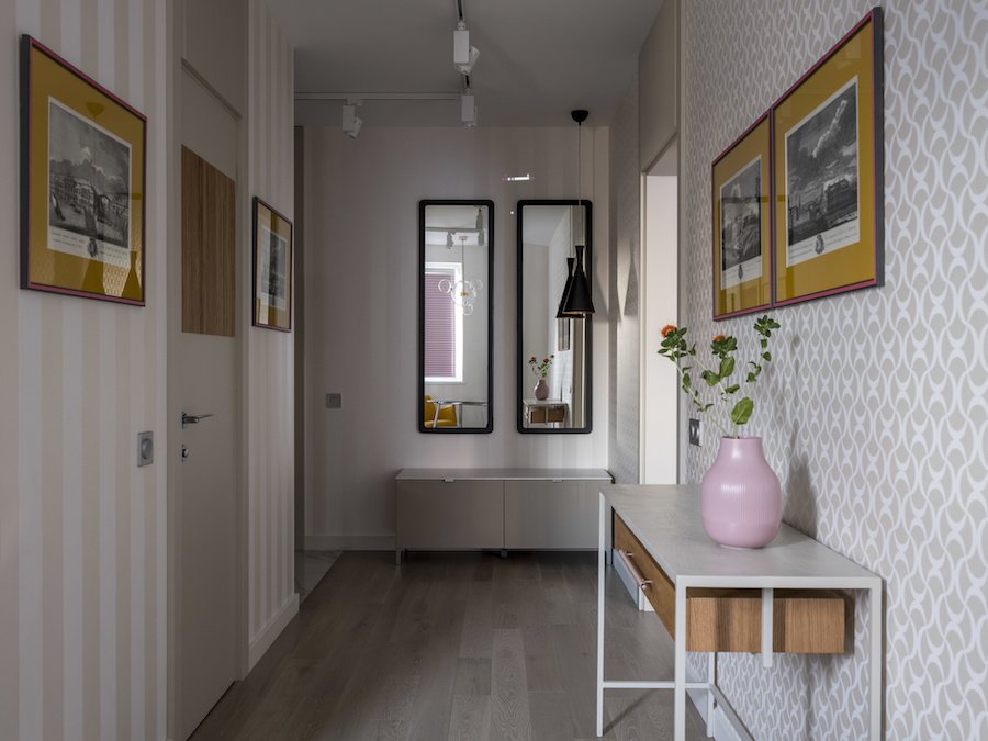 Переступая порог своей квартиры, хочется сразу же погрузиться в атмосферу уюта и спокойствия, почувствовать, что ты пришел домой. Создавая интерьер первого помещения в квартире, начинаем со стен, а уже потом подбираем и все остальное: мебель, декор, дополнительное освещение, зеркала. Иногда, в процессе создания уютной обстановки, мы можем даже что-то менять, но всегда ориентируемся на то, что у нас уже есть — стены.